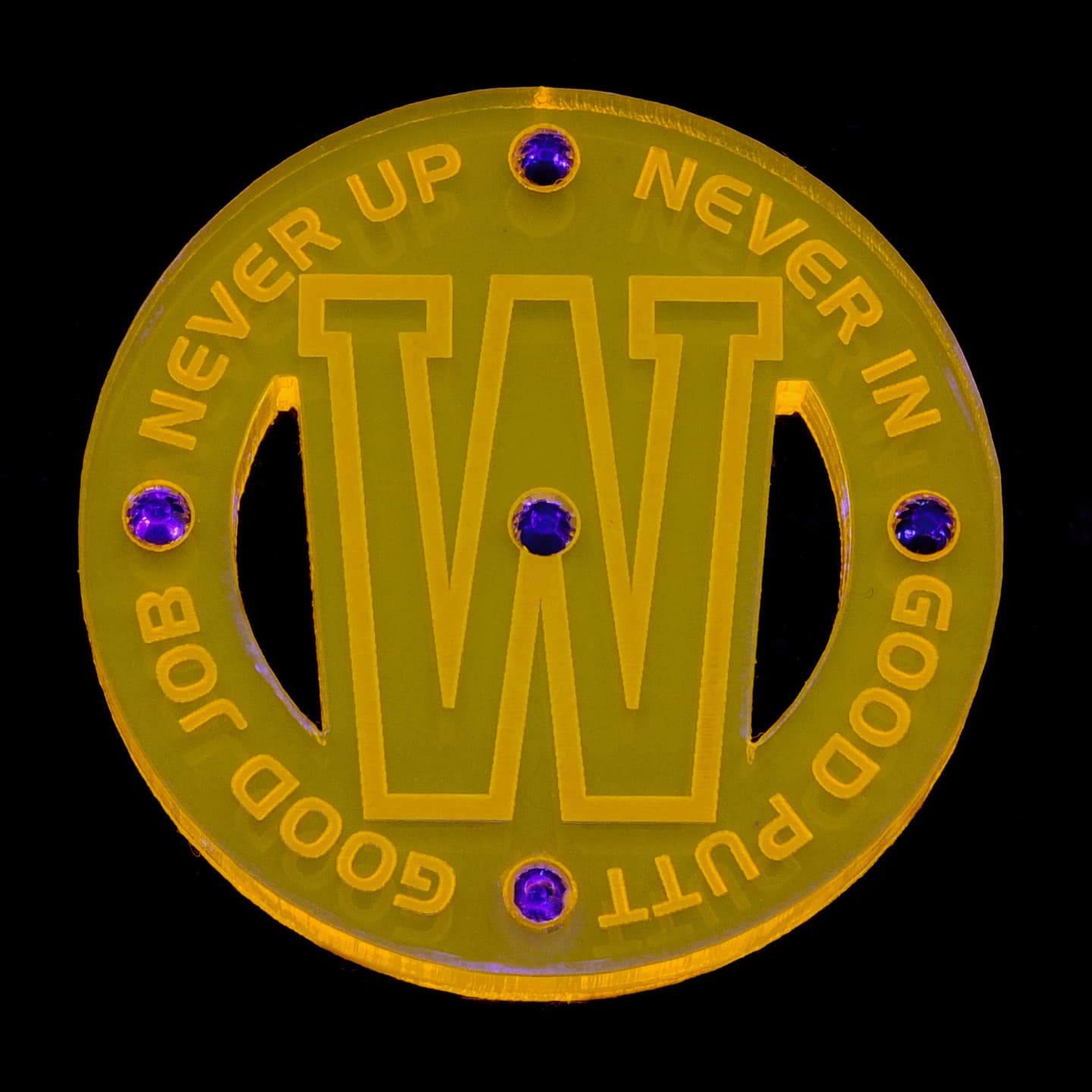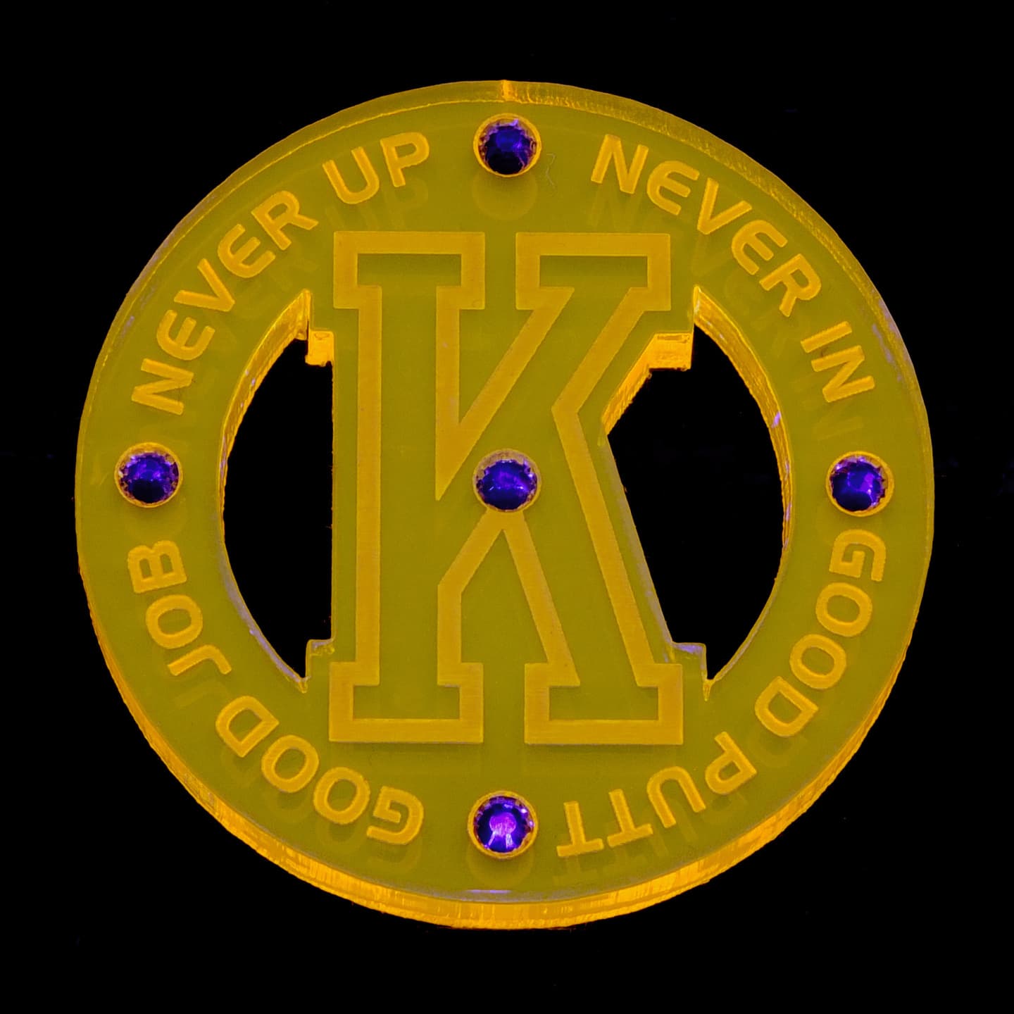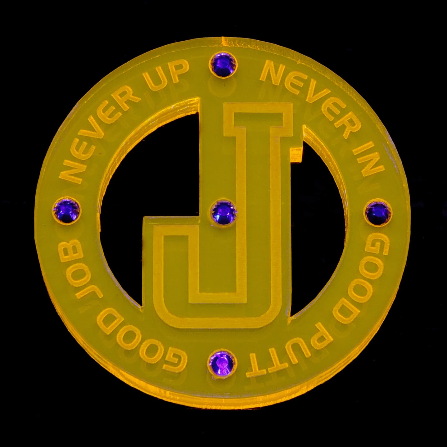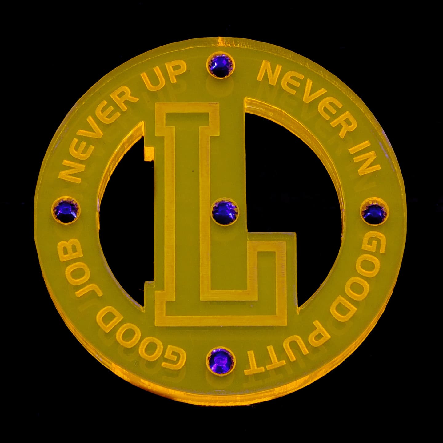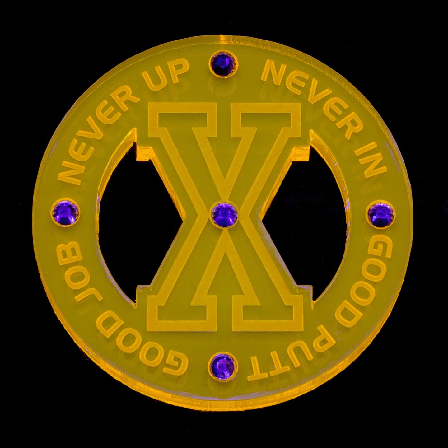 デザイン性の有るフォルムを追求、質感、重厚感が漂う、厚さ5mmのアクリル素材をチョイス、さらに輝きと美しさを演出する為にラインストーンをあしらいました。