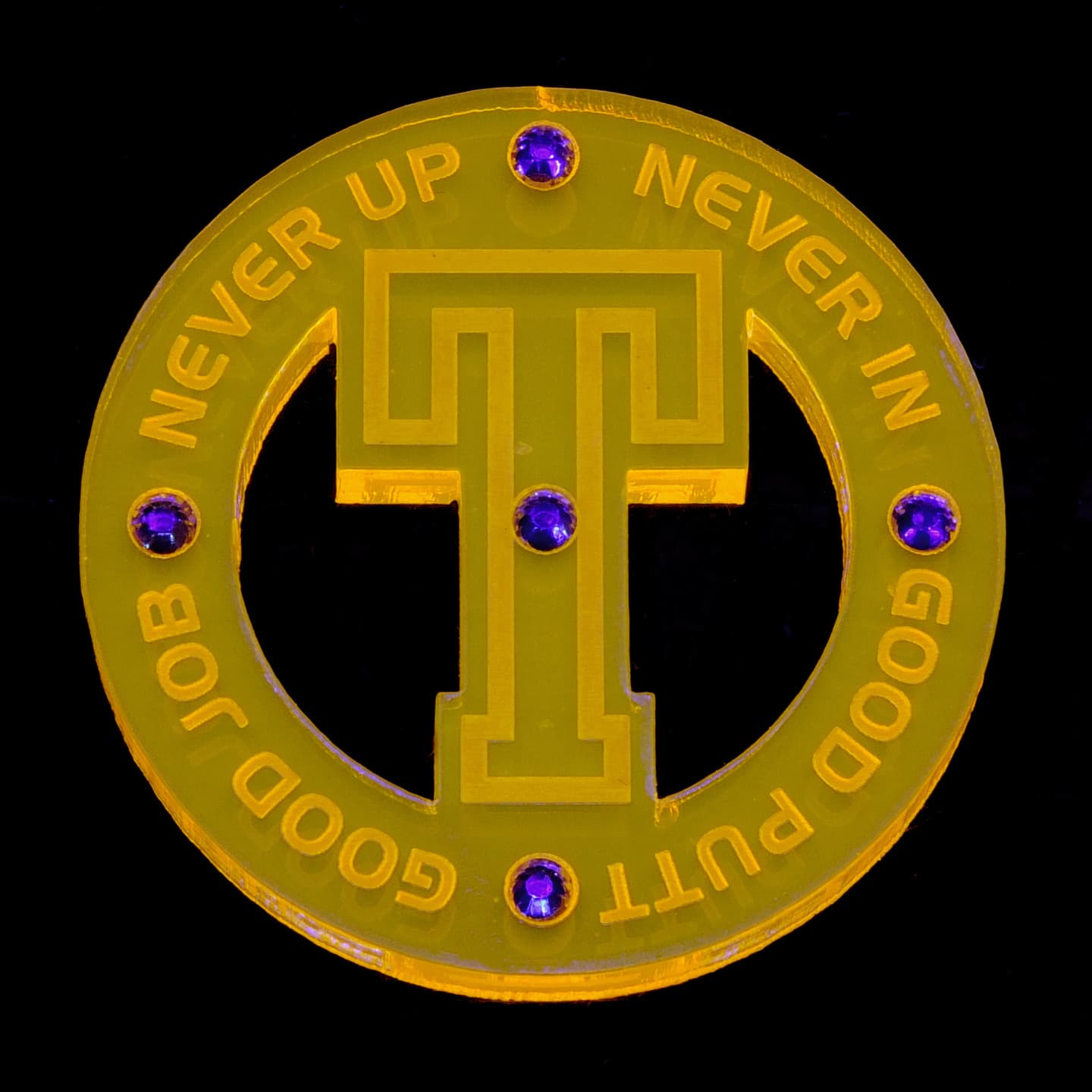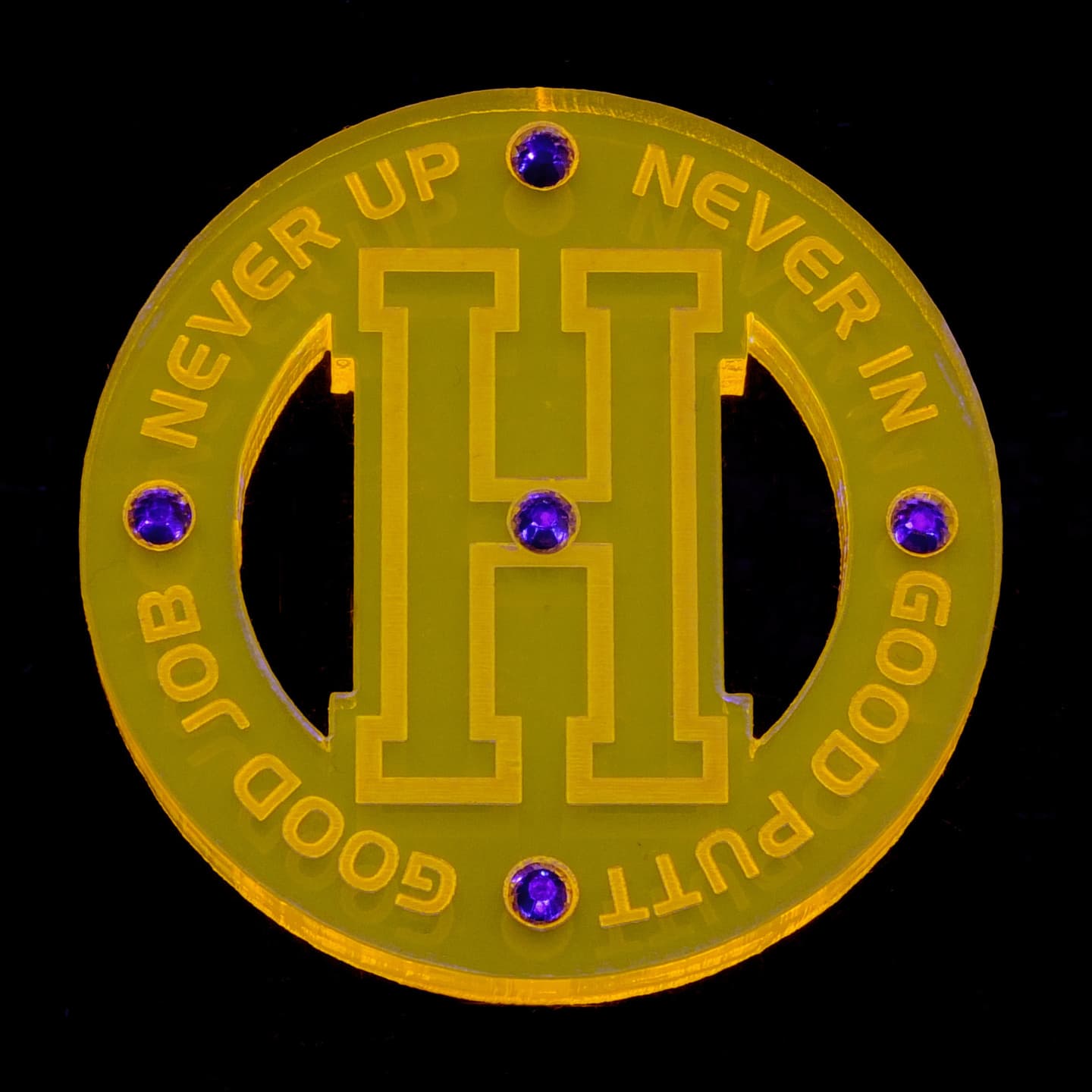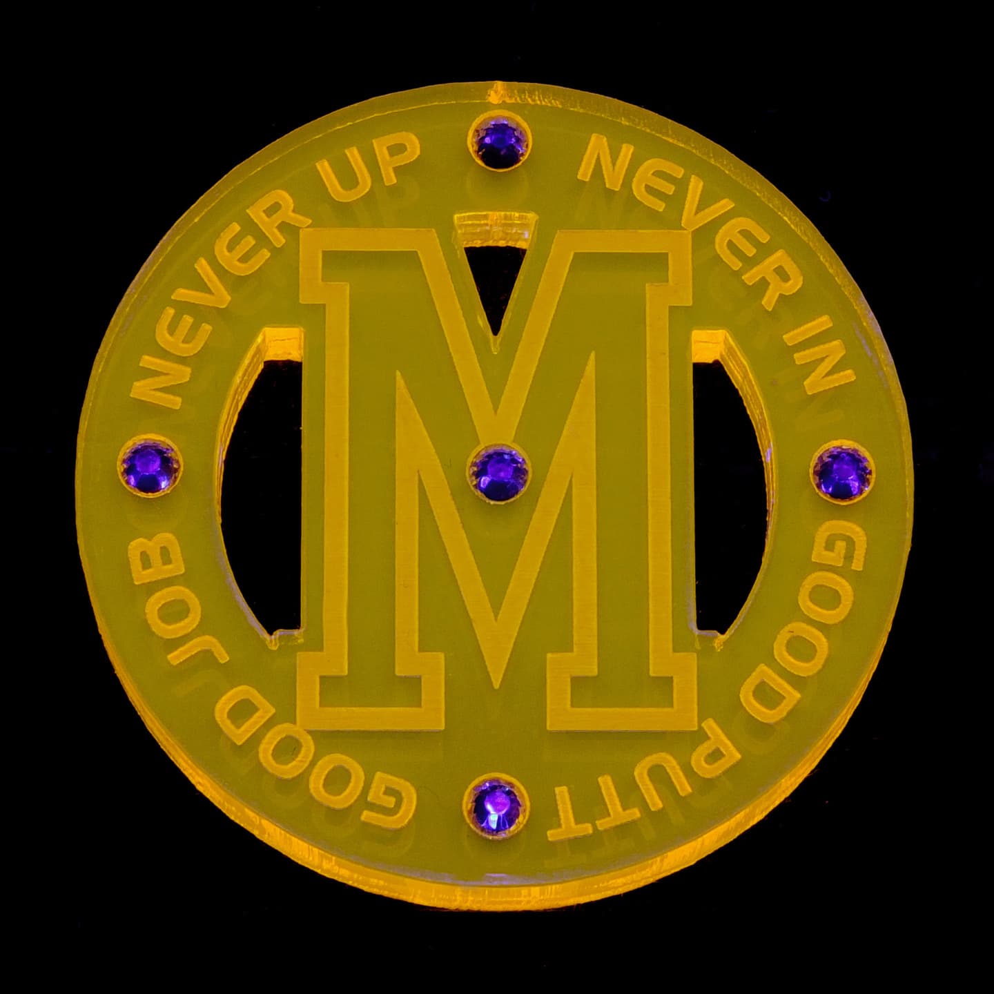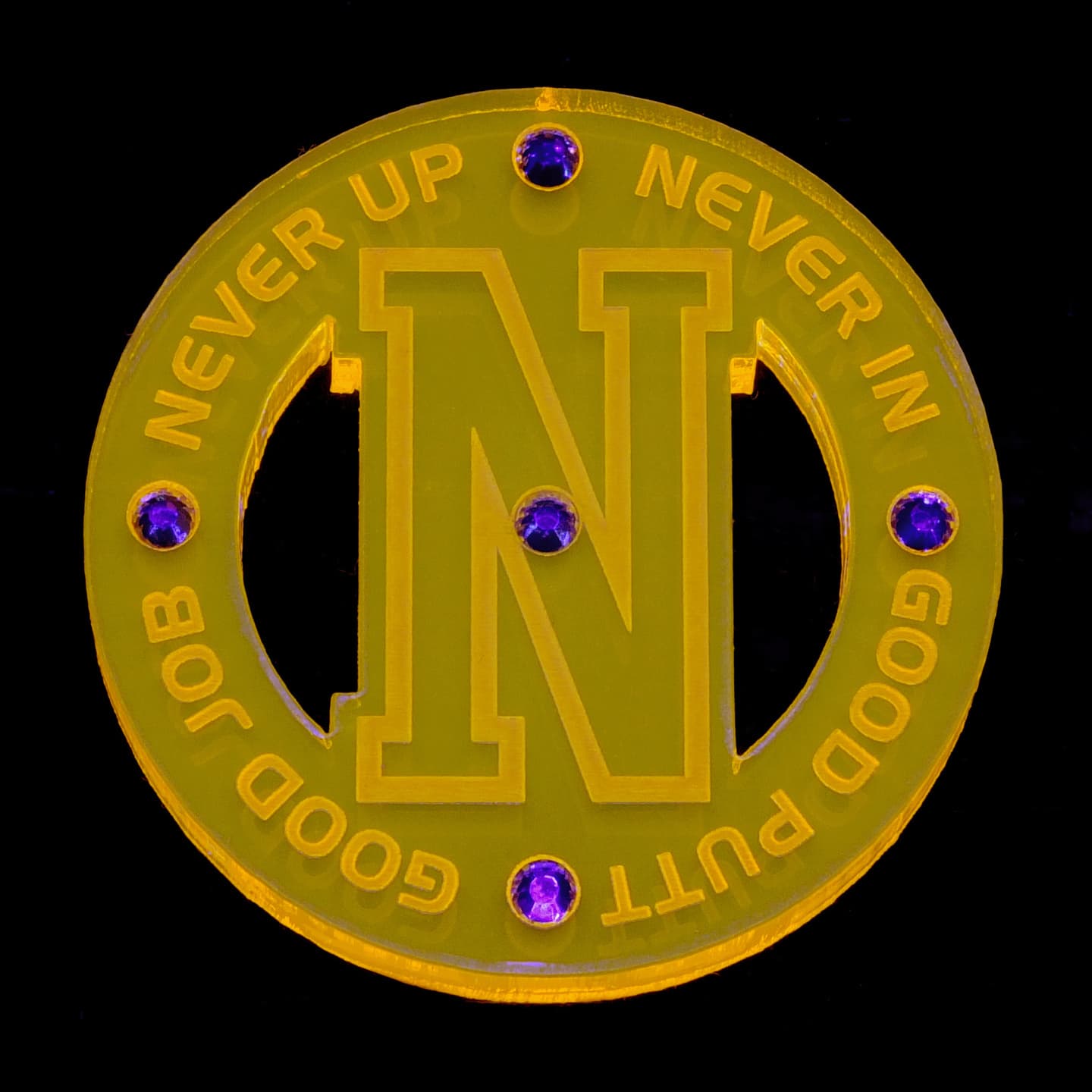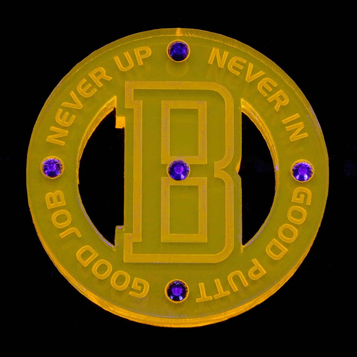 デザイン性の有るフォルムを追求、質感、重厚感が漂う、厚さ5mmのアクリル素材をチョイス、さらに輝きと美しさを演出する為にラインストーンをあしらいました。