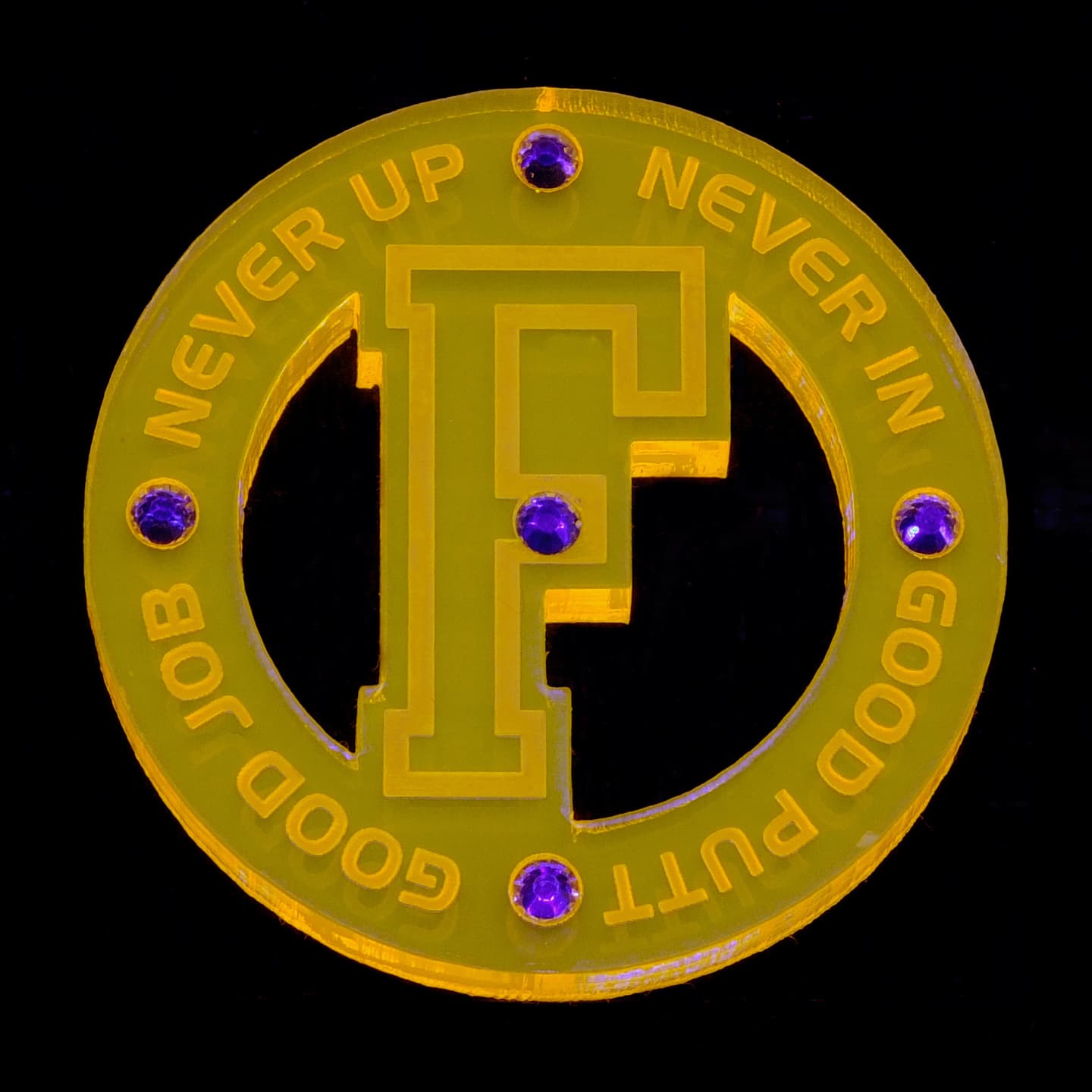一般的に使われているのは、看板、スポーツグッズ、ゴルフボール、ホビー用品等、プラスチック樹脂に輝く蛍光染料を練りこんで使用されています。