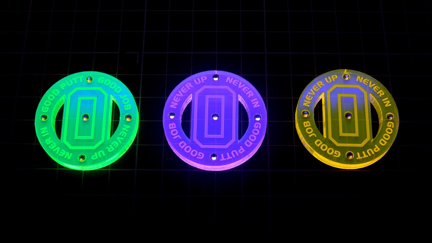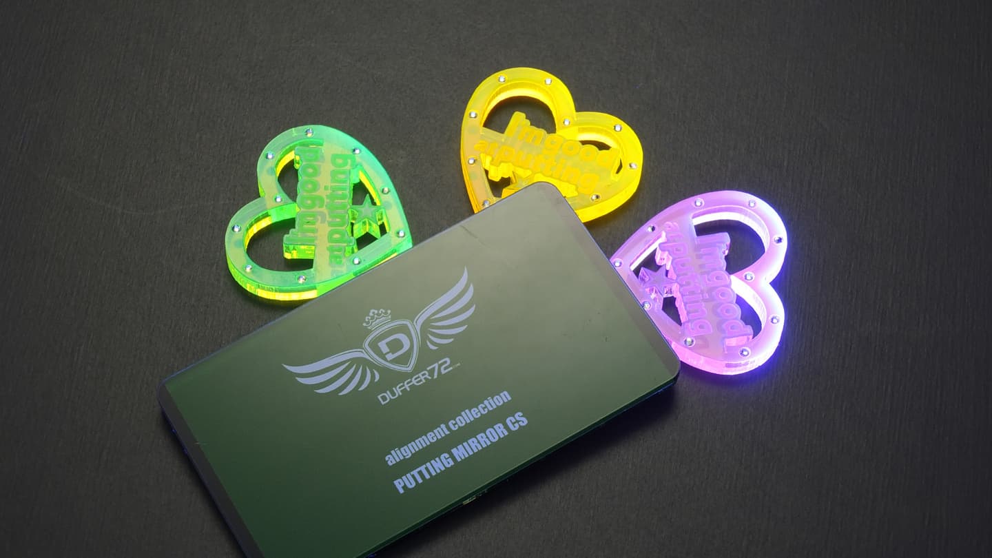 一般的に使われているのは、看板、スポーツグッズ、ゴルフボール、ホビー用品等、プラスチック樹脂に輝く蛍光染料を練りこんで使用されています。